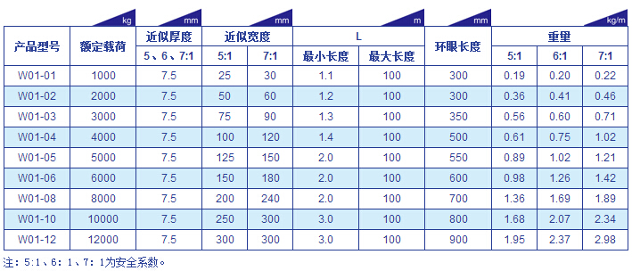 巨力W01型(環(huán)眼型)吊裝帶參數表