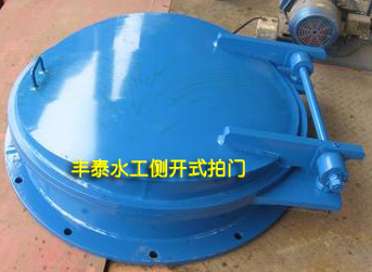側翻式拍門是一種將拍門門軸立式布置同時向內傾斜一定角度的拍門。 目前國內外排灌泵站拍門,普遍使用的是自由起落旋掛式拍門和浮箱式拍門,這種拍門的門軸橫向布置,門體開啟時需要克服門體的全部自身重量,所以存在開啟角度小,水流阻力大,能源損耗多等缺陷。 為減小能耗,提高泵站運行效率,經多年研究開發,豐泰水工機械廠研制成功了一種開啟角度大、水流阻力小的節能型自由側翻式拍門,根據力學原理,將原本懸掛式拍門的橫向門軸改為立式門軸,同時向內傾斜一個最佳的傾斜角度的拍門,此時門體所要克服的開啟力僅為門體自重的分力,所以節能型自由側翻式拍門能在開啟時達到更大的開啟角度,從而達到減小水流阻力,起到節約能耗的作用。